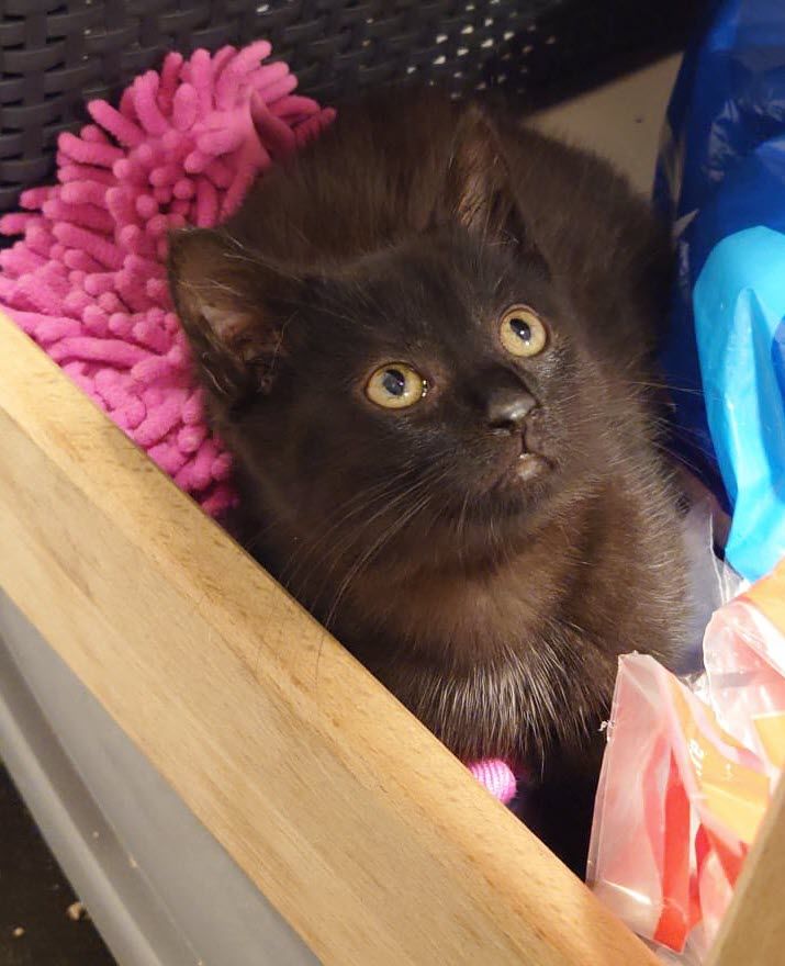 Immo, geboren ca. Juni 2025, hat sich auf der Pflegestelle schnell an Menschen gewöhnt und lässt sich auf dem Arm nehmen sowie streicheln.
