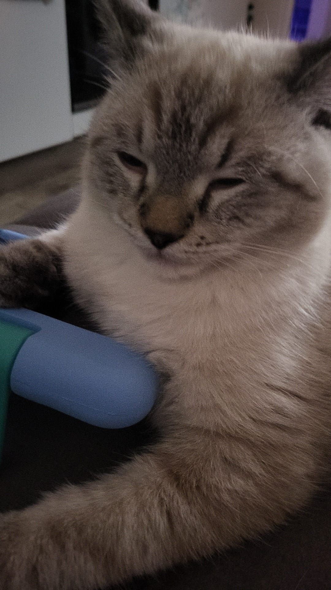 Mit meiner zweiten Katze, einer liebevollen Spanierin, versteht sie sich gut. Ab und zu kuscheln die beiden gemeinsam im Körbchen oder genießen entspannte Stunden auf dem Balkon in der Sonne.